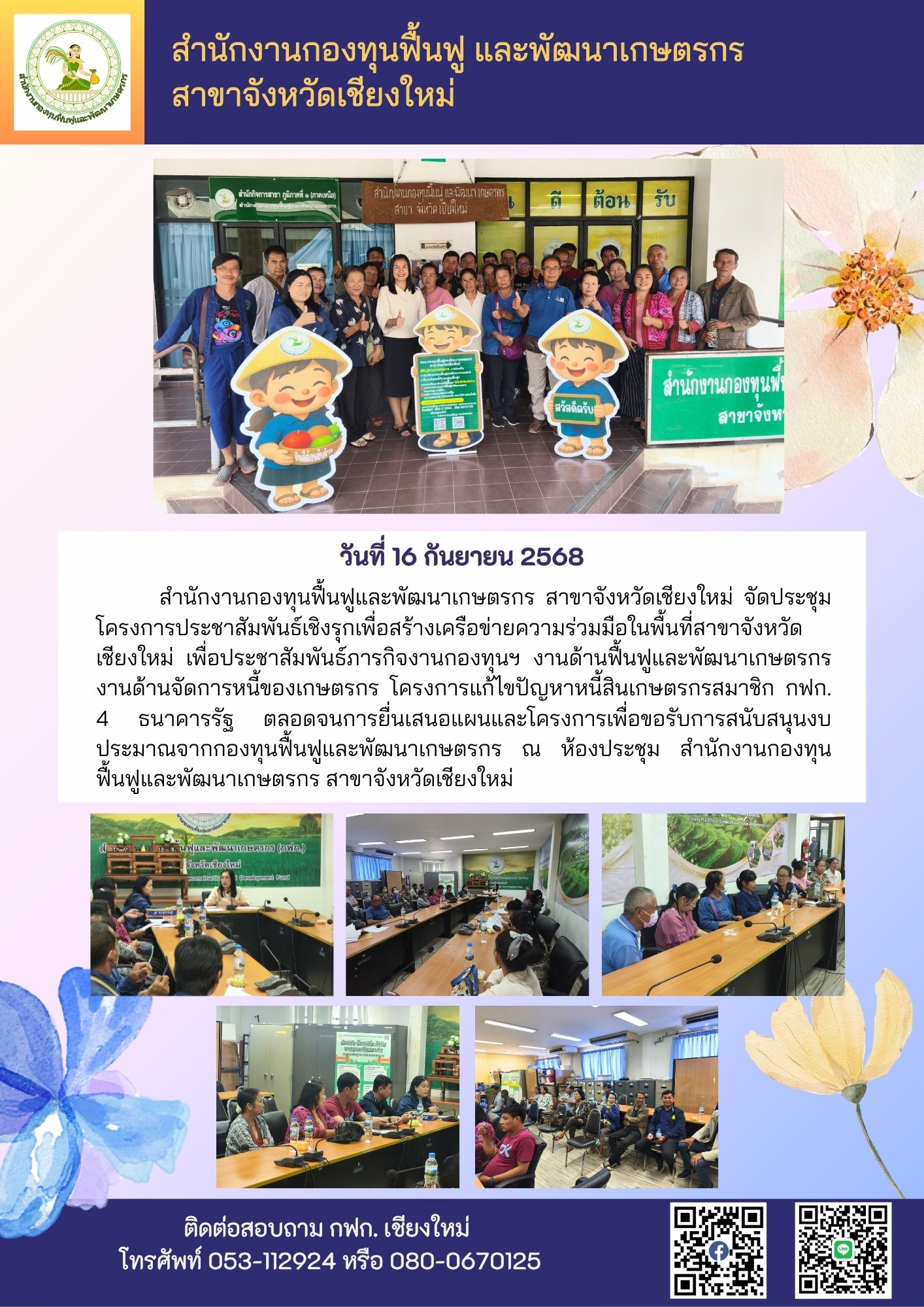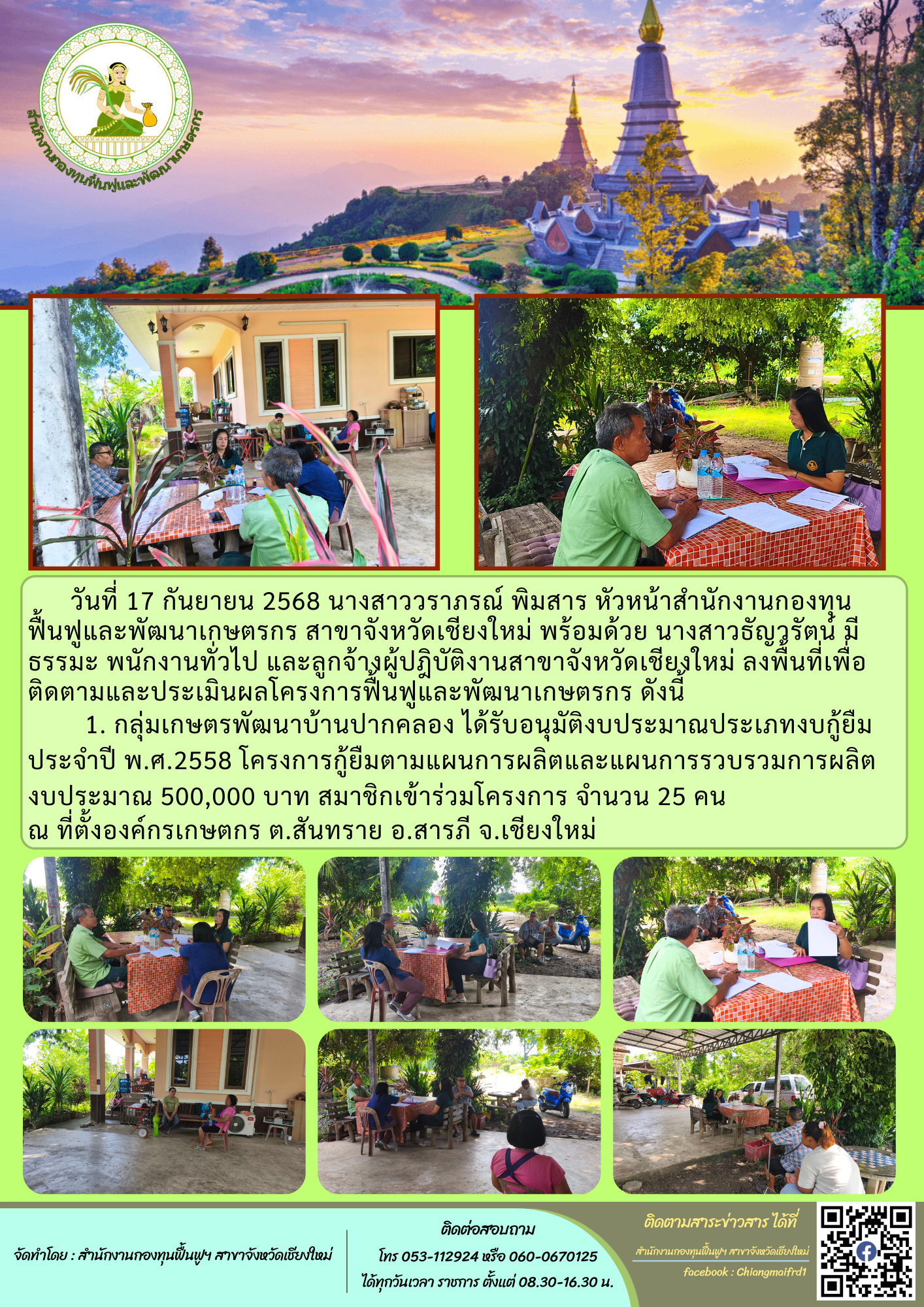 ณ สำนักงานกองทุนฟื้นฟูและพัฒนาเกษตรกร สาขาจังหวัดเชียงใหม่