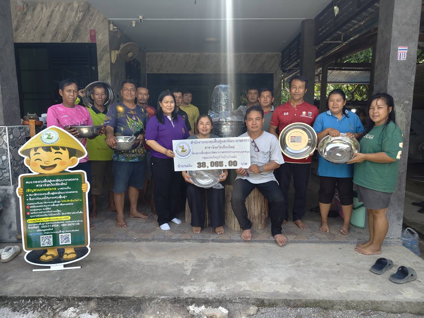 วันที่ 29 กันยายน 2568 นางสาววราภรณ์ พิมสาร หัวหน้าสำนักงานกองทุนฟื้นฟูและพัฒนาเกษตรกร สาขาจังหวัดเชียงใหม่ ได้มอบหมายนางสาวธัญวรัตน์ มีธรรมะ พนักงานทั่วไป และลูกจ้างผู้ปฎิบัติงานสาขาจังหวัดเชียงใหม่ ลงพื้นที่เข้าร่วมกิจกรรมงบอุดหนุนของ องค์กรเกษตรกร องค์กรเกษตรกร กลุ่มแปลงใหญ่ลำไยบ้านวังหม้อ ที่ได้รับอนุมัติงบประมาณ (งบอุดหนุน) ปี พ.ศ. 2568 ตามโครงการ “ทดลองทำไวน์ผลไม้ตามฤดูกาล” จำนวนเงิน 38,065 บาท โดยองค์กรได้เบิกจ่ายงบประมาณ จำนวน 2 งวด ในงวดที่ 1 เบิกจ่ายเป็นเงิน 13,200 บาท สมาชิกเข้าร่วมโครงการ จำนวน 15 ราย ณ ที่ตั้งองค์กร เลขที่ 175 หมู่ 1 ต.บ้านแอ่น อ.ดอยเต่า จ.เชียงใหม่